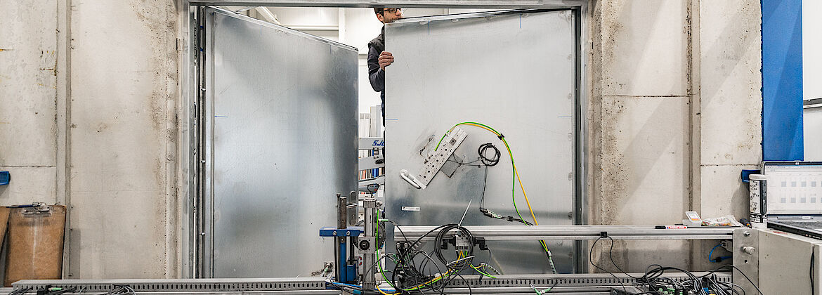 Benefit from our comprehensive services. Our reliable, dedicated team will convince you in plant and product safety as well as in the area of product testing from fire, smoke and fire protection to air-conditioning, refrigeration and heating technology to drive, fluid and gear technology as well as air quality and rope testing. Our service portfolio also includes the testing of building components such as doors, gates, windows, facades, grilles, roller shutters and their fittings. Among other things, we test these for sound insulation, burglar resistance, permanent function, wind load and design individual special tests for you.