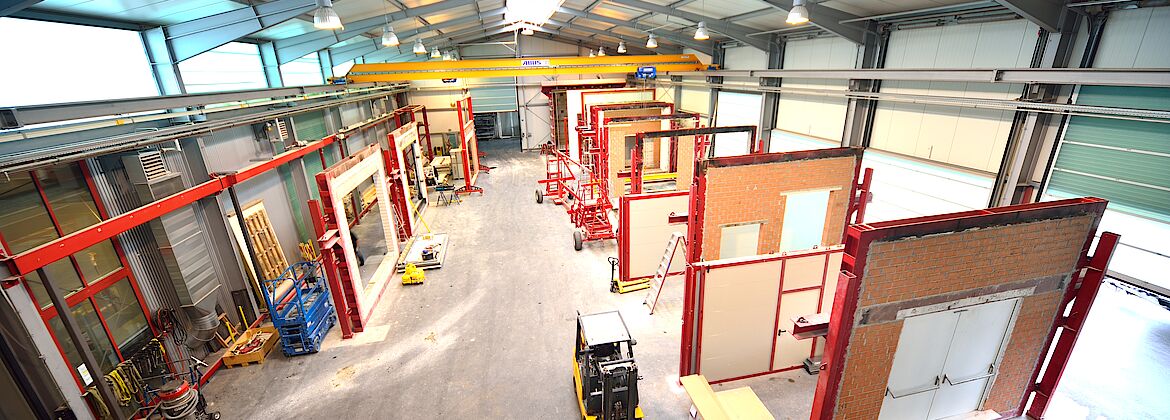 The preparation of furnace (ceiling, testable wall elements) will be done by DMT. The Installation of the cable laying / mounting is the responsibility of the Client. The specimen can be mounted trough reinforced autoclaved lightweight concrete.