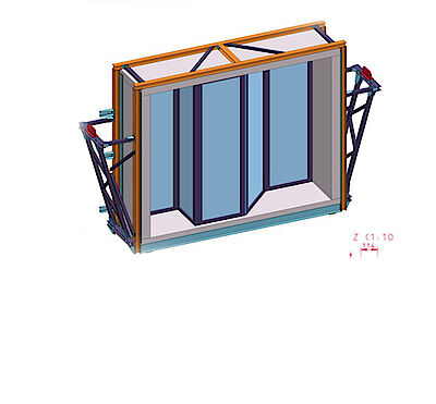 For the smoke control test chamber, 14 mobile exchangeable test frames are available for mounting the test specimens. These allow a very flexible test process, so that the waiting times between assembly or possible improvements to the test specimen and the tests are minimized.
