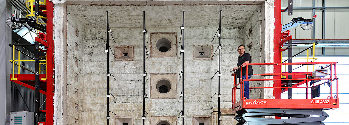 The separate and video-monitored durability test hall has an area of 200 m² and provides space for 10 test specimens to be tested in simultaneously.