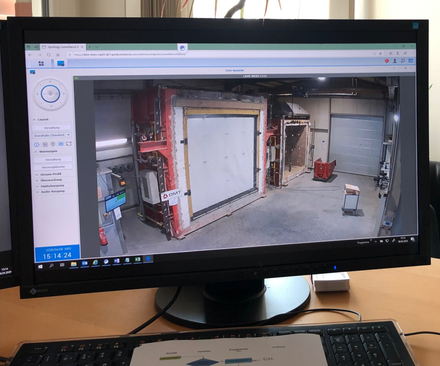 Live broadcast of a fire test