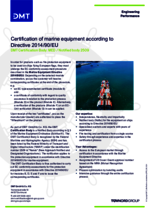 As part of DMT GmbH & Co. KG, the DMT Certification Body is a Notified Body according to § 3 of the Marine Equipment Ordinance (SchAusrV). The DMT Certification Body is recognised by the Federal Maritime and Hydrographic Agency (BSH) and has been listed by the Federal Ministry of Transport and Digital Infrastructure ("BMVI") under the identification number 2509 in "Nando" (New Approach Notified and Designated Organisations). The notification applies to fire protection equipment in accordance with Directive 2014/90/EU for marine equipment.